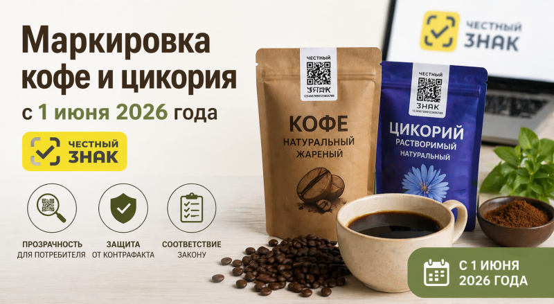 1 сентября 2026 года — для розницы закрывается переходный период. После этой даты продажа немаркированного кофе и цикория, относящихся к обязательной категории, запрещена. До 1 сентября магазины могут распродавать остатки, закупленные до 1 июня 2026 года.