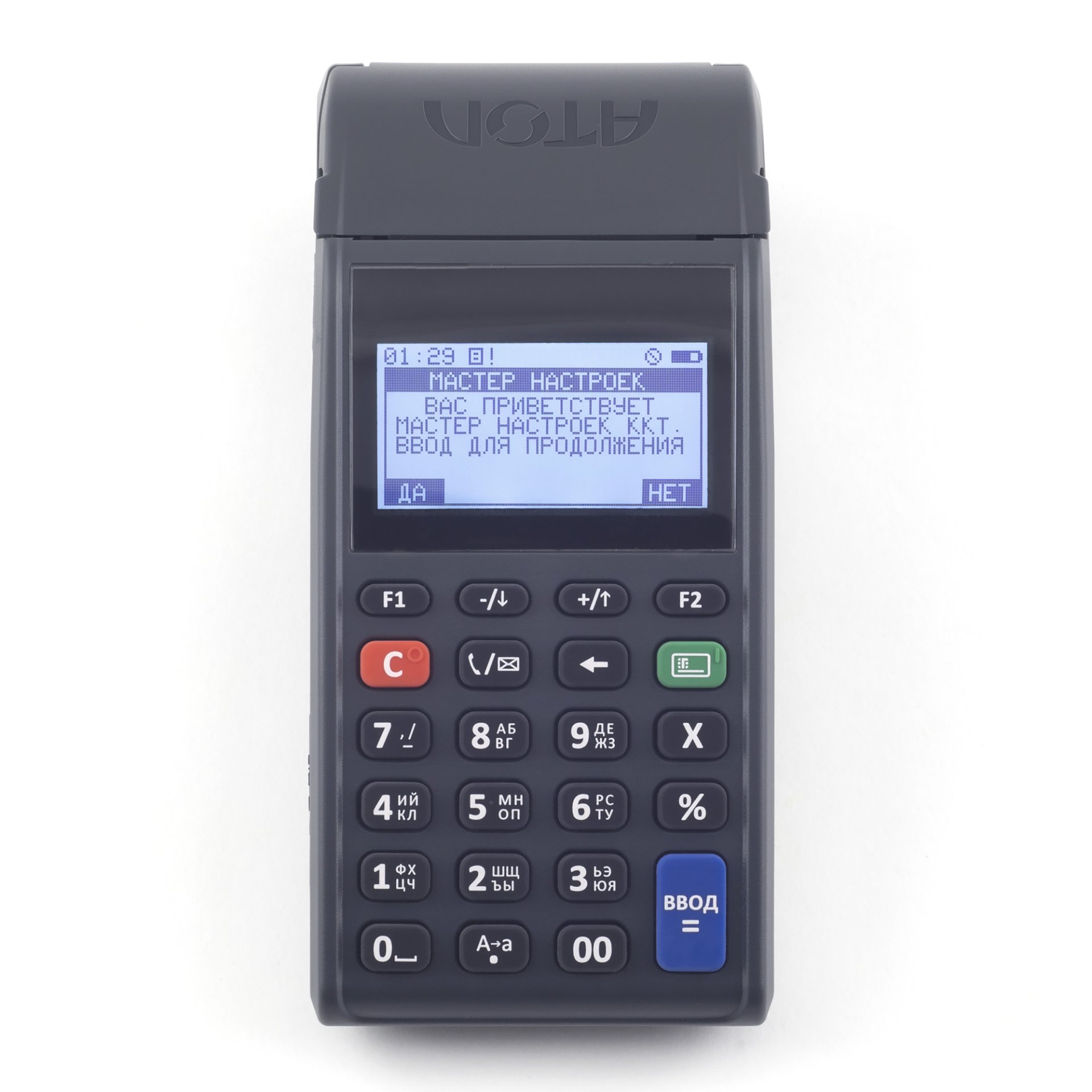 Кассовый аппарат этой модели очень легкий, имеет кнопочную клавиатуру и встроенный аккумулятор, за счет чего идеально подходит в качестве мобильного устройства для обслуживания. Информативный дисплей отображает уровень заряда, подключения к сети, а также другую информацию. Эта модель была разработана брендом АТОЛ в качестве замены аппарата Атол 90Ф и основного конкурента технике другого производителя – касс Меркурий 180Ф и 185Ф.