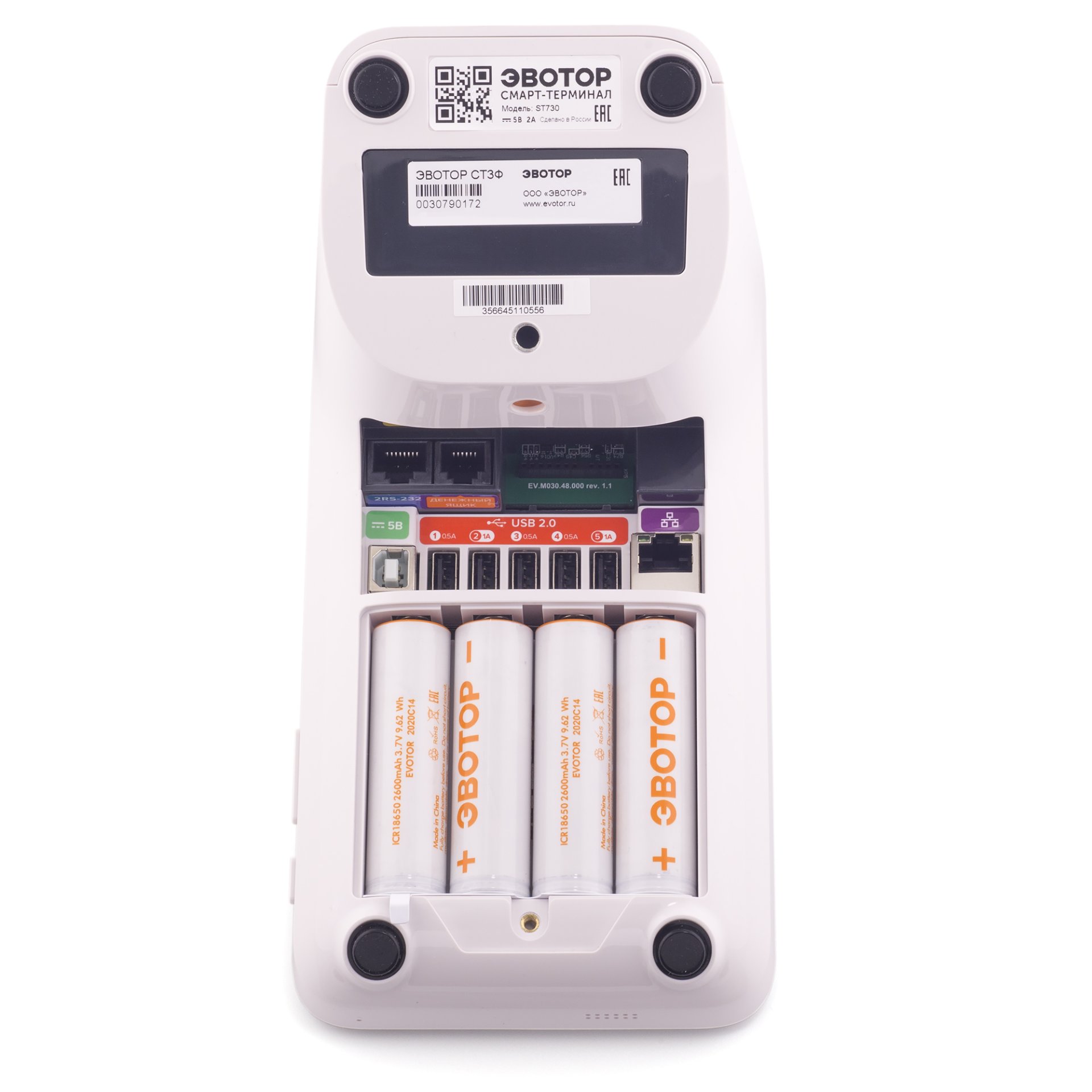 - Автономность – Эвотор 7.3 может использоваться как онлайн-касса на стационаре или на выезде. Возможность работы в течение 14 часов без подзарядки – отличное решение для тех, кто организовывает точки продаж на сторонних площадках. Это не только расширяет область сбыта, но и дает полную свободу от электроэнергии – встроенные аккумуляторы этой модели работают максимально долго по сравнению с другими аппаратами этого производителя.